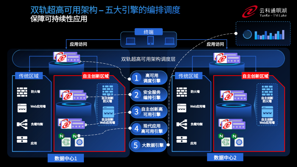 为实现双轨超高可用架构信创区和非信创区的跨域协同,实现信创区域和非信创区域的平滑过渡,K8凯发官网顺利获得五大引擎实现多层次的应用可持续性。